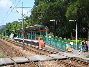 Tong Fong Tsuen (Chinese: 塘坊村) is an at-grade MTR Light Rail stop located at Castle Peak Road in Yuen Long District, near Tong Fong Tsuen. It began service on 18 September 1988 and belongs to Zone 4.[1]