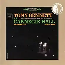Tony Bennett at Carnegie Hall is a 1962 live album by Tony Bennett. The June 9th concert was directed by Arthur Penn and Gene Saks. Carnegie Hall had not featured a pop performer until April 23, 1961 when Judy Garland recorded her legendary concert.[3]