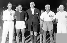 Newell's v Nacional at Parque Independencia. Fltr: Mario Morosano, Aníbal Tejada (referee), and Roberto Porta, January 1943