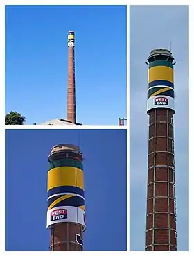From 2021 the South Australian tradition which commenced in 1954 of placing the SANFL premiership team colours on top of the chimney at the West End Brewery (first in Hindley Street[22][23] and after 1980 at the Thebarton site[24]), was moved to the Brickworks kiln chimney. The Woodville West Torrens Eagles were the 2021 SANFL Premiers,[25] and after temporary placement on a replica chimney on the day of the ceremony,[24] the colours were unveiled on it on the actual chimney on 19 October 2021.[26]