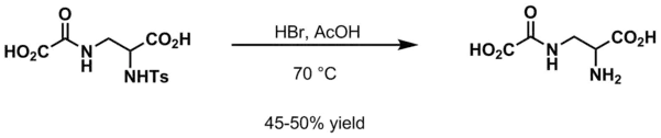 - Haskell, Betty E.; Bowlus, Stephen B. (1976-01-01). "New synthesis of L-2-amino-3-oxalylaminopropionic acid, the Lathyrus sativus neurotoxin". The Journal of Organic Chemistry. 41 (1): 159–160. doi:10.1021/jo00863a042. ISSN 0022-3263. PMID 1244456.