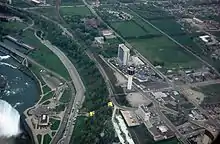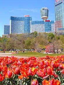 The Tower Hotel,[1] opened in 1962, is located in the Fallsview district of Niagara Falls, Ontario and was the first of the contemporary observation towers built near the brink of the Falls. It features an indoor observation deck, restaurant, and hotel. The tower is 99 metres (325 feet) tall above street level and 160 metres (520 feet) above the falls. The tower assumed its present name in 2010 as a result of its most recent renovation; as Minolta was the longest-tenured sponsor of the building, tourists and locals may still call it the Minolta Tower.