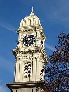 The Town Clock is a large clock that stands in downtown Dubuque, Iowa. The clock has stood over the city for over 140 years. The present clock is the second "Town Clock"; the first collapsed in the 1870s, killing three people. The building on which it originally stood is listed on the National Register of Historic Places, but the clock tower itself is not.[1]