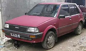 The first Starlet assembled outside Japan was the 1985 1.0 XL built in Indonesia. A year later, the 1.3-litre model joined the production line there.[13] The Indonesian-built Starlets were only available as 5-door with carburettor, 4-speed manual transmission and offered as XL, SE, Lissé and Si Limited. A minor change for Japanese models was given in 1987 with new nose, tail lights, bigger bumpers, and revised interior. Indonesian-built Starlet received these minor changes in 1988, while European and general market models retained the older appearance.