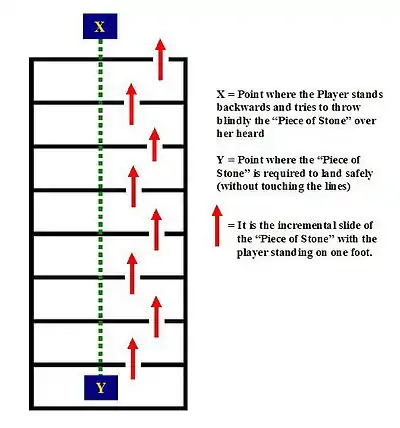 Gutte (similar to Meergati and Bilghotti in Pakistan) involves players throwing up and then grabbing stones on the ground, while ensuring none of the stones falls from the air to the ground.[17][18][19]