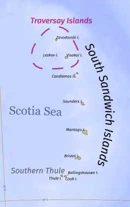 ![]() The Traversay Islands within the South Sandwich Islands | |