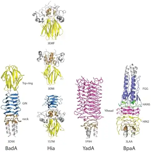 All Trimeric Autotransporter Adhesins are crucial virulence factors that cause serious disease in humans. The most-studied and well-known Trimeric Autotransporter Adhesins are listed below:[1]