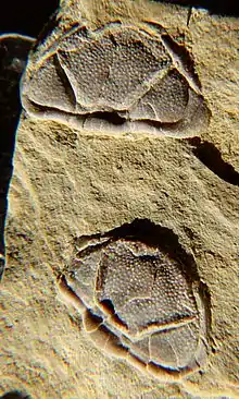 | Two cephalons of the trilobite Trimerocephalus interruptus | |