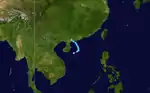 The monsoon trough spawned a tropical depression on August 10. It tracked to the northeast, then turned to the northwest where it became a tropical storm on the 11th. A tug pulling RMS Caronia to Taiwan was overcome by the weather as it sought shelter at Guam, and cut loose Caronia, which was driven against the breakwater at the entrance to Apra Harbor on August 12, blocking all ship traffic.[4] Mary's appearance resembled an extratropical cyclone due to vertical shear, and as the ridge built over Japan, Mary turned more to the west. Conditions were favorable enough for Mary to reach typhoon strength on the 18th, but it weakened to a tropical storm before hitting northeastern China on the 19th. A high pressure system over China forced now Tropical Depression Mary to the southeast, where it restrengthened into a tropical storm on the 24th. The storm turned to the northeast, briefly becoming a typhoon again on the 25th before weakening. Mary hit Japan on the 26th, and dissipated shortly thereafter. 3 people died in Mary's path, with moderate damage occurring.