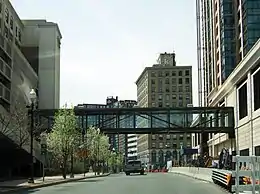 The 353,600-square-foot (32,850 m2) Trump Plaza consists of 138,000 square feet (12,800 m2) of retail space on two levels at its base, topped with a luxury condominium tower.[5] Trump Plaza rises more than 435 feet (133 m) over downtown New Rochelle. The retail portion of the project is linked to New Roc City by an enclosed pedestrian bridge.[6]
