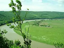 The majority of Cucuteni–Trypillia settlements were of small size, high density (spaced 3 to 4 kilometres apart), concentrated mainly in the Siret, Prut and Dniester river valleys.[3] During its middle phase (c. 4000 to 3500 BC), populations belonging to the Cucuteni–Trypillia culture built the largest settlements in Neolithic Europe, some of which contained as many as three thousand structures and were possibly inhabited by 20,000 to 46,000 people.[4][5][6]