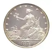 The third was American interest in aligning its currency with the Latin Monetary Union and to bring its weights for coinage into the metric system. Several times in the 1860s and 1870s, the United States Mint struck pattern coins that were to be used if America joined, in some cases with the equivalent in foreign money struck as part of the design. The twenty-cent piece was to be equivalent to one French franc in that system, and if in proportion to the smaller silver coins being struck,[lower-alpha 1] would weigh five grams, a fact which appealed to advocates of the metric system in Congress.[9][10] Another purpose for a large issue of silver coins, regardless of denomination, was to retire the fractional currency—low-value paper money or "shinplasters". Congress passed legislation in 1875 and 1876 for large quantities of silver coins for this purpose.[11]