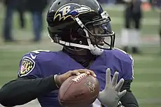Tyrod Diallo Taylor[1] (born August 3, 1989) is an American football quarterback for the New York Giants of the National Football League (NFL). He played college football for Virginia Tech, leading the Hokies to the 2009 Orange Bowl as a Sophomore and 2011 Orange Bowl during his senior year. He was selected by the Baltimore Ravens in the sixth round of the 2011 NFL Draft and served as the backup to starting quarterback Joe Flacco, including during the Ravens' Super Bowl XLVII victory over the San Francisco 49ers.