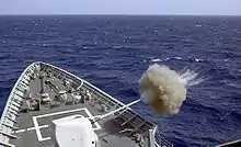 Yorktown received the Atlantic Fleet's "Top Gun" award for outstanding naval gunfire support in 1987. During the second deployment from September 1987 to March 1988, Yorktown participated in numerous U.S. and NATO exercises, as well as multi-national exercises with Morocco, France, West Germany, Tunisia, and Turkey. It was on this Mediterranean deployment that Yorktown gained worldwide publicity from operations conducted in the Black Sea as part of Freedom of Navigation program.[2] On 12 February 1988, while Yorktown was exercising the "right of innocent passage" through Soviet territorial waters, the Soviet Burevestnik-class frigate Bezzavetnyy (Russian: Беззаветный) intentionally collided with Yorktown with the intention of pushing her out of Soviet territorial waters.[3] The Assistant Secretary of Defense for International Security Affairs at the time, Richard L. Armitage, acknowledged that the transit was not operationally necessary, but asserted that it was still a valid innocent passage under international law.[4]