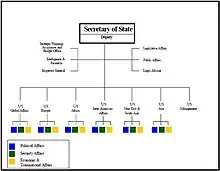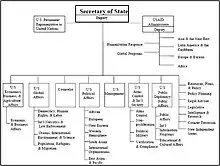 - "the creation of five Under Secretaries with the responsibility for overseeing the regions of Africa, Asia, Europe, Inter-America, and Near East/South Asia, and a redefinition of the responsibilities of the Under Secretary for Global Affairs"[15]