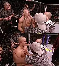 St-Pierre's trainer Greg Jackson denied any wrongdoing, stating that Nurse was rubbing and tapping on St-Pierre's body as part of a drill to aid in his breathing techniques. Jackson said that any Vaseline transferred from residue on Nurse's fingers was accidental and wiped off when pointed out.[52] Georges St-Pierre spoke to Sports Illustrated with regard to the controversy stating, "I haven't seen the fight yet, but I remember at some point something happened and the athletic commission was complaining. They used a towel to wet my back and wipe it off. I don't mind. I didn't put Vaseline on myself and I'm not a cheater."[53] However, St-Pierre offered Penn a rematch in the summer that Penn verbally accepted but both had scheduled title defenses and the bout never came to fruition.[54]