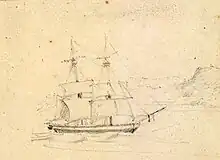 After six weeks in the vicinity of Canton City, China, with the onset of the winter northeast monsoon and no sign of Boxer, Peacock sailed from Lintin Island in the Pearl River estuary for the bay of Turane (modern Danang) as best for access to Hué, capital of Cochin-China – her task was to explore the possibilities of expanding trade with the kingdom.[23] Contrary winds from the northwest rather than the expected northeast quarter, coupled with a strong southward current, caused her to lose ground on every tack until, on 6 January 1833, she entered what enquiries disclosed to be the Vung-lam harbor of Phu Yen province.[24]