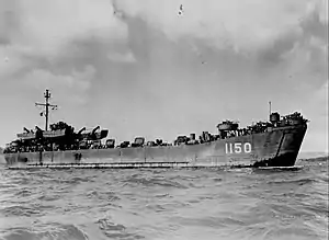 During World War II, LST-1150 was assigned to the Asiatic-Pacific theater. She was assigned to occupation and China in the Far East from 20 October to 3 December 1945.