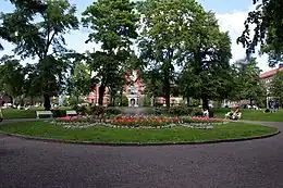 Great emphasis was placed on the surroundings of the town hall beside the river. Among other things a new esplanade from the town hall towards the north was created. A park was built to give the town hall a monumental position.[11] In the garden is a bust to Gustav Rosén who was on the town council and rose to be the Governor of the county.[12]
