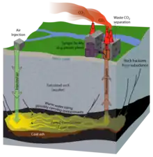 2, proponents of UCG have argued that the process has advantages for geologic carbon storage.[4] Combining UCG with CCS (Carbon capture and storage) technology allows re-injecting some of the CO