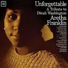 Unforgettable: A Tribute to Dinah Washington is the fifth studio album by American singer Aretha Franklin. Released on February 18, 1964, by Columbia Records, the album is a tribute dedicated to the recently deceased singer Dinah Washington. The sessions were recorded in New York. A few tunes were cut with strings in order to bring out the essential ballad character of the songs (with the help of Bob Mersey's arranging); most of the tracks, though, were made with the assistance of a small and sympathetic accompanying group for which Mersey supplied minimal written guidance.