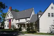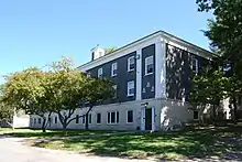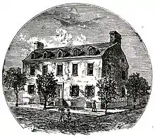 After Union College received its charter in 1795 the college began conducting classes on the upper floor, while a grammar school continued to be conducted on the lower.[41] It soon became clear that this space would prove inadequate for the growing college. Construction soon began on a three-story building, possibly influenced by Princeton's Nassau Hall,[42] that was occupied in 1804. Two dormitories were constructed nearby.