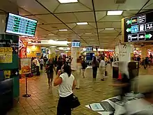 Historically, the 3,700-square-metre (40,000 sq ft) Bay Street Concourse was the hub of GO Transit operations for almost 40 years.[13][16] The Bay Concourse was closed on August 16, 2015, for revitalization,[17][18] and reopened on July 27, 2021. The concourse features 72 departure screens, 30 Presto devices, seven ticket vending machines and six self-service Presto reload machines. Both the Bay and York concourses give access to GO train platforms.[19]
