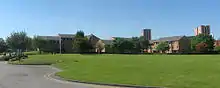 Castle Irwell Student Village was the largest area of accommodation, housing up to 1,600 students, and is on the site of the old Manchester Racecourse.[36] Castle Irwell was a popular choice for first years, due to the cheap rent, however Castle Irwell is no longer in use and has been superseded by the on-campus Peel Park Quarter. In 2016 the main building on the Castle Irwell site, known as 'the pav', was burned down in an arson attack.[37] Shortly after, demolition of the burnt and other derelict buildings on site commenced and completely cleared by early 2017.
