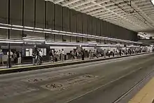 ![]() University Street station's platform level, viewed from one of the two mezzanines | ||||||||||||||||||