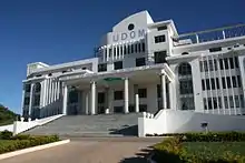The University of Dodoma (UDOM) is a public university located in Dodoma, the country's capital in central Tanzania.[1] Building is taking place on a 6,000-hectare site in the Chimwaga area about 8 kilometres (5.0 mi) east of downtown Dodoma.[2]