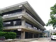 By the mid-19th century, its collection had grown to 40,000 volumes.[5] After extensions in 1890, a new library was completed in 1908 in what is now the Psychology building. As a result of further increases in students and holdings, today's library building was opened on North Street in 1976 where it now holds over a million books.[4] The building was designed by the architects Faulkner-Brown Hendy Watkinson Stonor based in the North East of England at Killingworth.[6] Faulkner-Brown specialised in libraries and leisure facilities and also designed the National Library of Canada in Ottawa and the Robinson Library at Newcastle University[7][8] In 2011 the main library building underwent a £7 million re-development.[9] St Mary's College Library incorporating the King James library from 1643 continues to house the university's Divinity and Medieval History collections.[10][11]