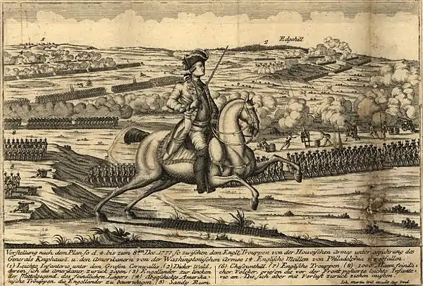 During the Philadelphia campaign of the American Revolutionary War, George Washington and the Continental Army were encamped here after their October 4, 1777 defeat at the Battle of Germantown, and immediately prior to their march to Valley Forge. From December 5–8, 1777, the Battle of White Marsh was fought here between British and American forces. Throughout the encampment, Washington was headquartered at the Emlen House, built by Quaker George Emlen in 1745. British commander General William Howe observed the American lines from the belltower of St. Thomas' Episcopal Church (at Bethlehem Pike and Camp Hill Road), site of the British encampment on December 5. Fort Washington State Park, in neighboring Whitemarsh Township, contains the area in which the primary American defenses were situated.
