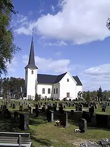 On 27 January 1804, the parish received permission to build a new timber-framed cruciform church on a new site about 1.3 kilometres (0.81 mi) to the north of the old site. This new site was closer to the village and further from the river, so it was a much better location. Construction began in 1804 on the new church and by 1806, the structure was completed and the interior furnishings were all in place. The new building was consecrated on 26 June 1806. The choir of the new building was in the eastern cross-arm of the nave, with a small sacristy attached to it. On the western end of the western cross-arm of the nave, there was a church porch and tower. During the 1860s, the interior was remodeled and redecorated. In 1916, the church was restored by Domenico Erdmann as a consultant and it was partly restored to the way it looked in the early 1800s as well as some of the medieval furnishings from the 13th century church.[4][5]