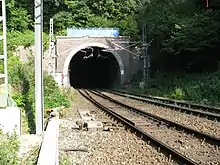 140 metres (460 ft) south of the point, a railway crosses the German-Belgian border in the Gemmenicher Tunnel. It is the freight-only railway between Tongeren and Aachen.