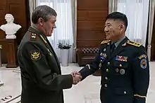 In September 2022, Gerasimov, Sergei Shoigu and Vladimir Putin attended the Vostok-2022 military exercises in the Russian Far East.[37] Beyond Russian troops, the exercises also included military forces from China, India, Mongolia, Algeria and several post-Soviet states, among others.[38]