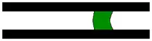 Rearranging the Laplace and Poiseuille relations suggests that radial growth occurs as a result of circumferential stretch and circumferential growth occurs as a result of shear stress.[9] Shear stress is proportional to the speed inside the vessel as well as the pressure drop between two fixed points on the vessel wall.[5] The precise mechanism of vessel remodelling is believed to be high stress on the inner wall of the vessel which can induce growth, which heads toward uniform compressive and tensile stress on both sides of the vessel wall.[9] Generally, it has been found that circumferential residual stress is compressive and tensile, indicating that inner layers of the endothelial tube grow more than outer layers.[15]