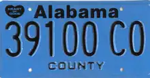 Alabama established a numerical county-code system for its license plates in 1941, with codes 1, 2 and 3 assigned to the three most populous counties of the time (Jefferson, Mobile and Montgomery), and codes 4 through 67 assigned to the remaining counties in alphabetical order.[12] Code 70 was added in 1948 for replacement plates, followed in 1966 by code 80 for supplemental plates in counties that had run out of standard plates.[3] The system remains in use today on passenger plates and some non-passenger types.
