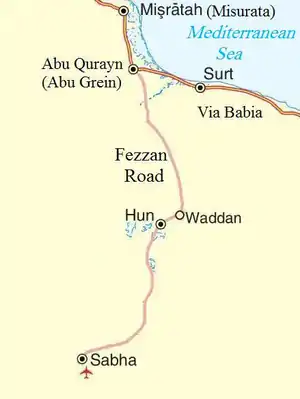 The Italians also constructed a minor road parallel to the coastal road, starting from Marj through Marawa, to Lamluda which is 143 km (89 mi) long.[2][3]