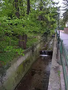The Döblinger Bach stream that originally sprang in the Cottage area and flowed into the Danube Canal at Spittelau has entirely disappeared because its water has been diverted.