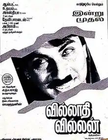 Villadhi Villain (transl. The Ultimate Villain) is a 1995 Indian Tamil-language action comedy film, written and directed by Sathyaraj, starring himself in three distinct roles.[1] Nagma and Raadhika play his love interests. The film, which was Sathyaraj's directorial debut, which remains his first and only directorial so far.[2] The film was also his 125th starrer, took a mammoth opening at the box office. It was dubbed in Hindi under the title Ek Aur Dharmatma and in Telugu as Sastry.[3]