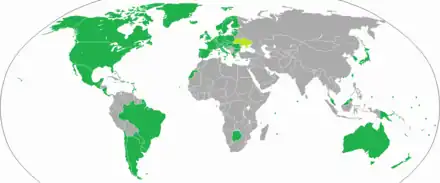 A visa-free stay is granted to nationals of all European Union countries, Andorra, Antigua and Barbuda, Argentina, Australia, Bahamas, Bangladesh, Barbados, Belize, Bolivia, Botswana, Brazil, Brunei, Canada, Chile, China,[lower-alpha 2] Costa Rica, Dominica, East Timor, Ecuador, El Salvador, Eswatini, Fiji, Gambia, Ghana, Grenada, Guatemala, Honduras, Hong Kong, Iceland, India, Japan, Kenya, Kiribati, Lesotho, Liechtenstein, Macau,[lower-alpha 2] Malawi, Malaysia, Maldives, Marshall Islands, Mauritius, Mexico, Micronesia, Monaco, Namibia, Nauru, New Zealand, Nicaragua, Norway, Palau, Panama, Papua New Guinea, Paraguay, Saint Kitts and Nevis, Saint Lucia, Saint Vincent and the Grenadines, Samoa, San Marino, Seychelles, Sierra Leone, Singapore, Solomon Islands, South Africa, South Korea, Sri Lanka, Switzerland, Taiwan, Tanzania, Tonga, Trinidad and Tobago, Tunisia, Tuvalu, Uganda, United Kingdom, United States, Uruguay, Vanuatu, Vatican City, Venezuela, Zambia and Zimbabwe.[lower-alpha 3][25][6]