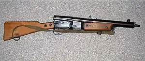 The Volkssturmgewehr ("People's Storm - Rifle")[3] is the name of several rifle designs developed by Nazi Germany during the last months of World War II (February 1945-May 1945). They share the common characteristic of being greatly simplified as an attempt to cope with severe lack of resources and industrial capacity in Germany during the final period of the war. The Volkspistole was a partner program, almost identical, but for pistols instead.