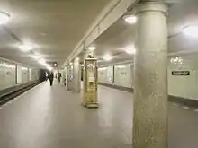 Voltastraße is a Berlin U-Bahn station located on the U8. Built in 1914 but not opened until 1930 (a delay caused by the First World War), it has granite columns and is 4.5 metres (15 ft) below the street.[1]