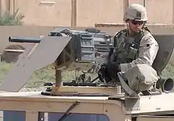 The end product was to be a kit for quickly converting an existing lethal weapon to a non-lethal vortex ring generator that could knock-down an individual or spray him with a dye, malodorous chemical, or incapacitating chemical. The kit, consisting of a nozzle with chemical reservoirs and belts of blank 40mm cartridges modified to detonate at pressures up to 100,000 psi (690 KN/sqN), was being designed for the Navy MK19-3.[10] The 40mm grenade machine gun was selected because firing at 4–10 shots per second resonates with many body parts and causes a stronger impact effect.[11]