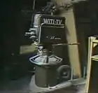 From 1956 to 1959, WITI used the DuMont Vitascan color system—which required a completely darkened set with a single strobe light, causing eye strain—for its locally produced programs. The situation was difficult for the on-air talent, according to Sid Armstrong, who worked at WITI as a news reporter during the station's early years.[5] The station switched to monochrome cameras when it moved to the North 27th Street facility.[6]