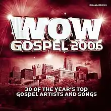 WOW Gospel 2006 is a gospel music compilation album from the WOW series. Released on January 31, 2006, it comprises thirty-two songs on a double disc album. The release reached 20 on the Billboard 200 chart in 2006, the highest peak of any of the WOW Gospel series thus far, and made number one on the Top Gospel Albums chart.[1] The album cover pays tribute to Chicago, Illinois.