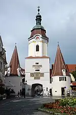 Steiner Tor is a-preserved gate in the city of Krems, originally built in the late 15th century but refashioned in the Baroque style.[32] It is considered the symbol of the city. Until the last third of the 19th century, the city of Krems was surrounded by a wall. This was systematically razed, and three gates were also removed. From 2005, celebrating the 700-year anniversary of the city rights, the Steiner Tor was restored as much to its original as possible.