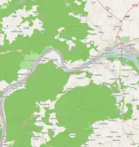 The Danube valley in Austria between the cities of Melk and Krems in Lower Austria is called the Wachau. This stretch of the valley includes the hills and the adjacent Dunkelsteiner Wald (Dunkelsteiner Forest) and the southern Waldviertel. The Danube river flows north-northeast from Melk to Dürnstein through a meander from which it flows southeast, then east past the city of Krems.[11][12] In the Wachau, the town of Spitz lies on the Danube's western bank and the city of Melk on its eastern bank. Other important towns in the valley are Dürnstein, Weißenkirchen in der Wachau and Emmersdorf an der Donau, which have a galaxy of old homestead buildings dating from the mid-6th century. The railway line built in 1909 between Krems and Emmersdorf is a topographical marvel.[4] Other settlements of note in the Wachau valley include Aggsbach, Bachamsdorf, Bergern im Dunkelsteinerwald, Furth bei Göttweig, Joching, Maria Laach am Jauerling, Mautern an der Donau, Mühldorf, Oberamsdorf, Oberloiben, Rossatz-Arnsdorf, Ruhrsdorf, Schwallenbach, Schönbühel-Aggsbach, Unterloiben and Willendorf.
