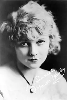 She had also appeared opposite William S. Hart, Charlie Ray, Bryant Washburn, Wally Reid and others. She was five feet three inches high, weighed a hundred and ten pounds, and had blond hair and greyish blue eyes. She was an able sportswoman.[4] With the advent of sound, Hawley's movie career largely ended; her last film was released in 1932. As her film career dwindled, in the late 1920s she performed sporadically in vaudeville comedy and legitimate theater.[5][6] In April 1927, she cautioned young women hoping to make it in the movies, "Don't make that trip unless you have enough money to keep you for three years without working."[7]