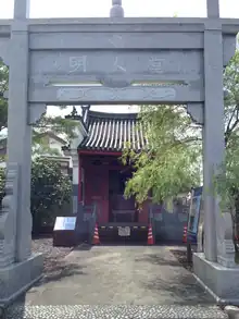 In Japan today, Wang Zhi is commemorated as a Sino-Japanese figure of trade instead of piracy, and locales associated with him are emphasized in Fukue and Hirado. Chinese-style hexagonal wells from Wang Zhi's time were preserved in Fukue and Hirado, and a Chinese temple in Fukue that Wang Zhi was said to have frequented was rebuilt.[12] In Hirado, Wang Zhi is celebrated for bringing the Portuguese to the city, ushering in the start of the Nanban trade in Japan and a period of prosperity in Hirado. A statue of Wang Zhi, along with statues of early Europeans who came to Hirado, was placed on the road leading to the local history museum,[47] and a stone stele stands on the site where Wang Zhi's mansion used to be.[12]